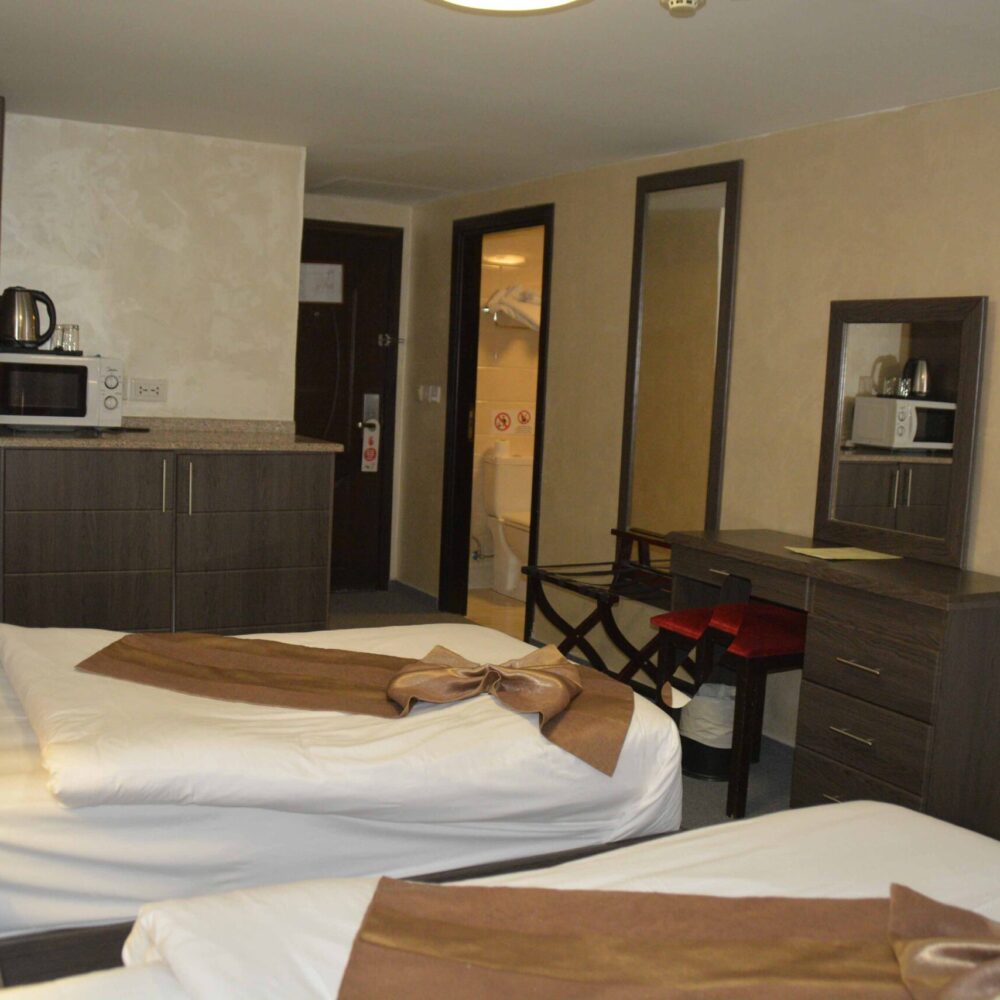 All the rooms and the suites are air-conditioned, distinguished with modern design and fully furnished, containing mini bar, microwave, hair dryer, water kettle, flat-screen TV and safety box.
